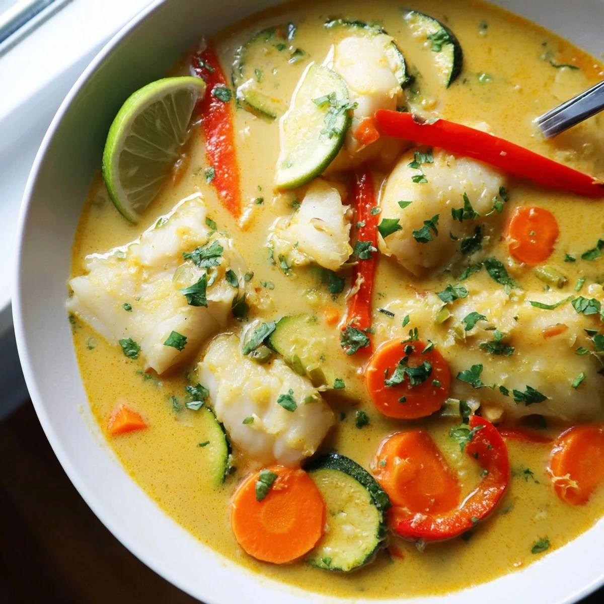 The first time I made this coconut fish stew was on a rainy Tuesday when I needed something that felt like a warm embrace but wouldn't weigh me down. I had bought beautiful white fish fillets earlier that day, and the idea of a fragrant, creamy broth kept calling to me. My kitchen filled with the scent of ginger, garlic, and coconut milk, and I knew this would become a regular in our rotation.