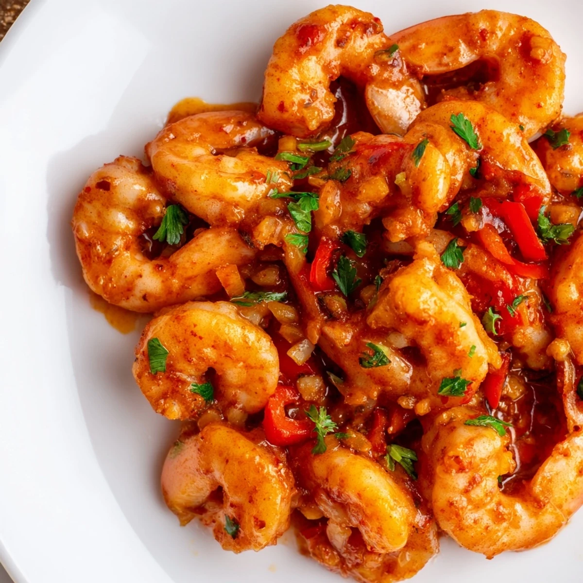 Savory shrimp cooked in a single skillet with aromatic garlic, smoked paprika, and sweet paprika create a vibrant Mediterranean-inspired dish. The shrimp are sautéed alongside red bell peppers until perfectly pink and tender, then finished with fresh parsley and a squeeze of lemon. Ready in just 20 minutes, this quick cooking method delivers maximum flavor with minimal cleanup.