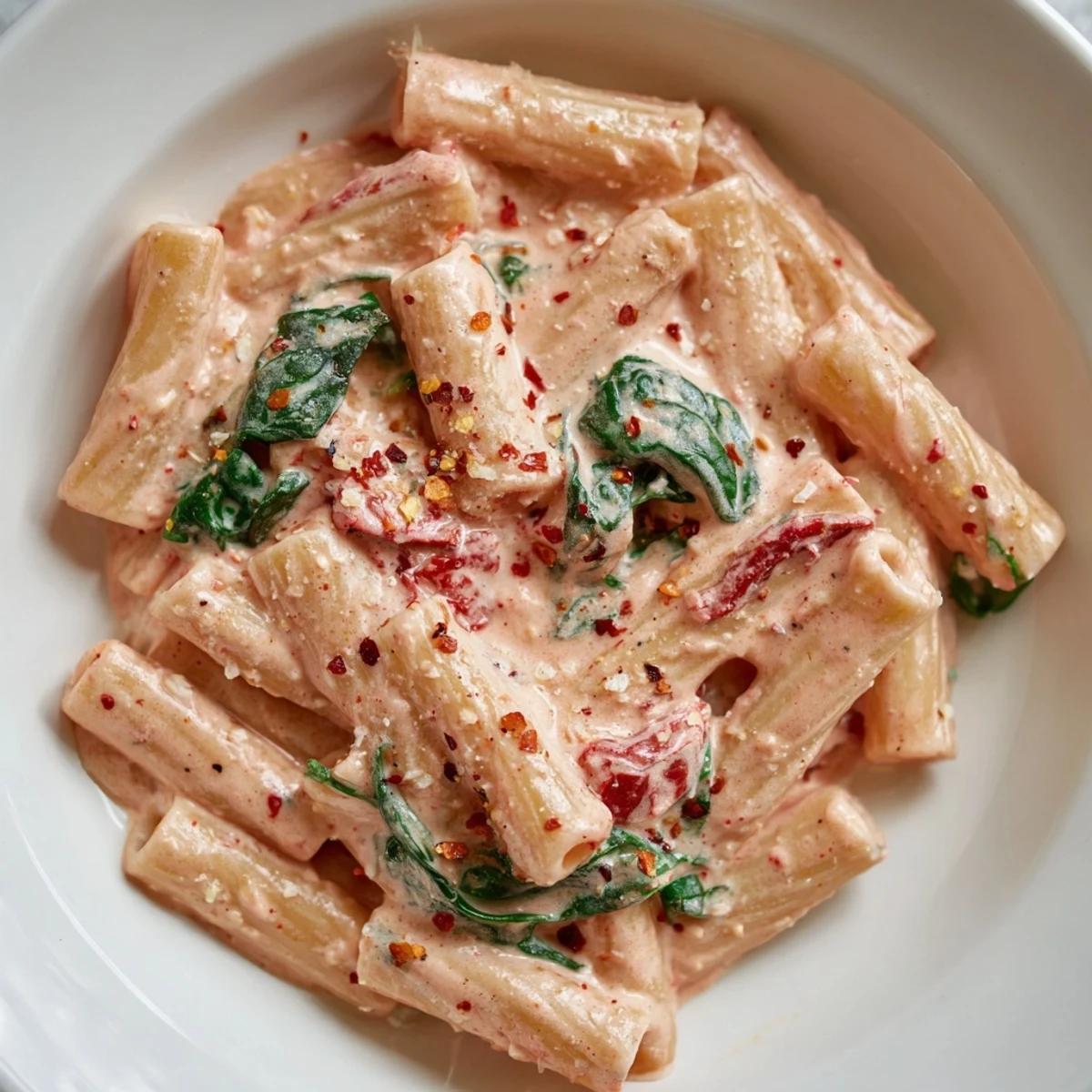 This one-pan creamy pasta combines the tangy sweetness of sun-dried tomatoes with tender fresh spinach in a luscious velvety sauce. The entire dish comes together in just 30 minutes, with the pasta cooking directly in the pan alongside vegetable broth and heavy cream for maximum flavor absorption. Perfect for busy weeknights when you want something comforting and satisfying without spending hours at the stove.